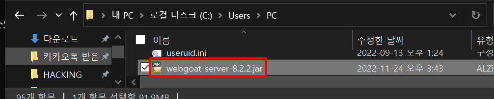 저는 CMD창에서 실행시키기 편하려고 C:\Users\PC로 옮겼습니다. 사용하기 편한 위치로 옮겨주세요!