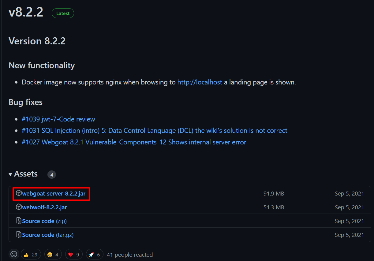 먼저 Web Goat의 github에 들어가서 자바로 실행시키기 위한 JAR 파일을 다운로드 받습니다.