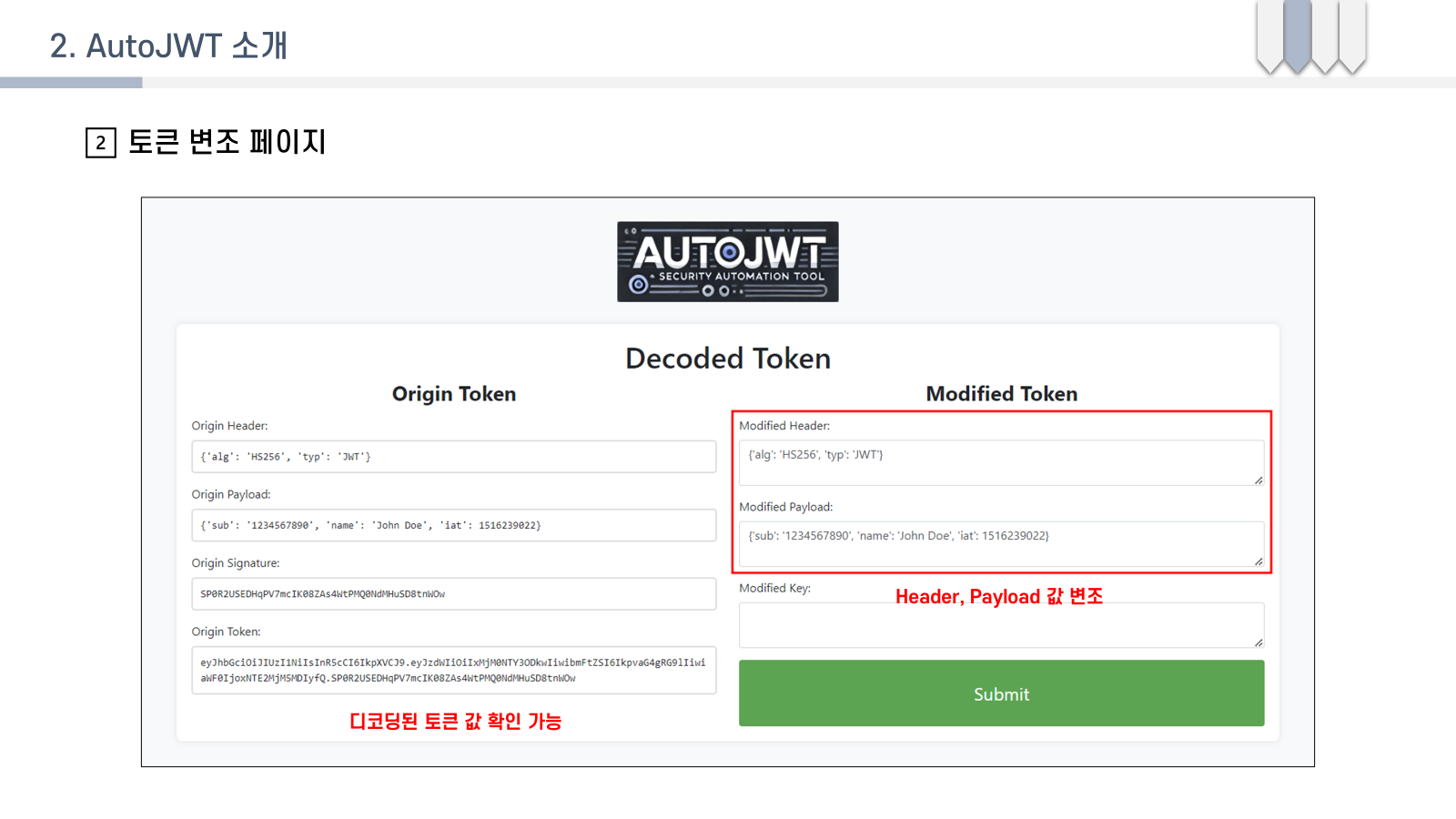portswigger의 "JWT attacks"를 보고 JWT Attack에 대해 공부하고 느낀점을 토대로 AutoJWT 툴을 제작해보았습니다!